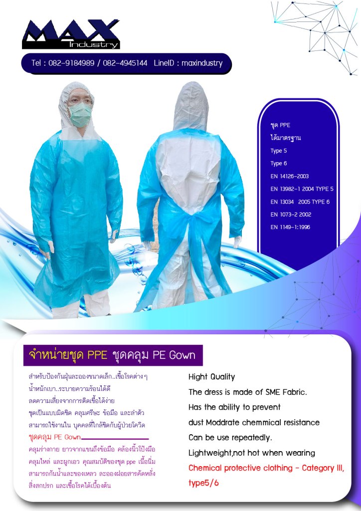 จำหน่ายชุด PPE และ ชุดคลุม PE Gown