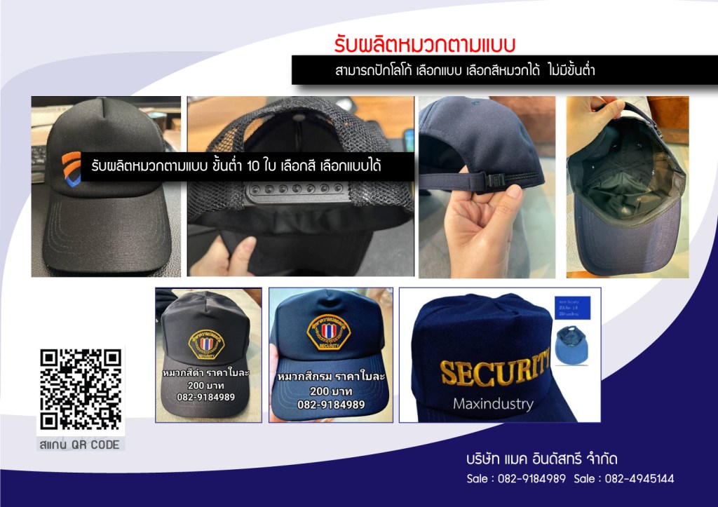 หมวกเจ้าหน้าที่รักษาความปลอดภัย มีให้เลือกหลายแบบ และสามารถสั่งผลิตได้ ติดโลโก้บริษัทได้