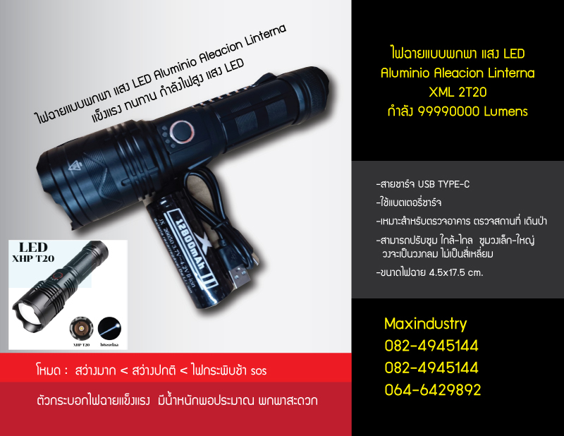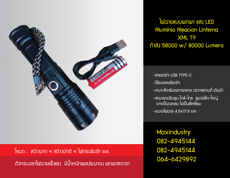 ไฟฉายขนาดใหญ่ กระบอกไฟอะลูมิเนียมแข็งแรง ทนทาน มีน้ำหนัก อย่างดี